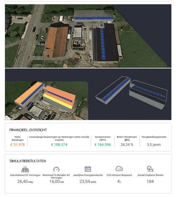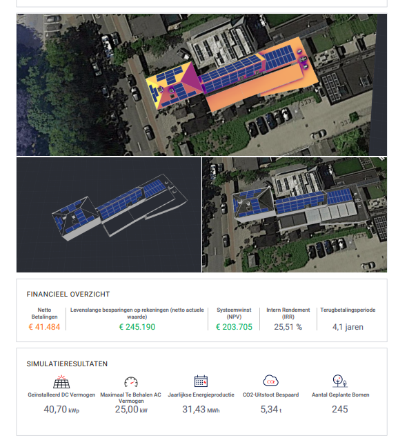 Met deze tool kunnen wij perfect bepalen op welk dakvlak uw PV zonne-panelen het meeste zullen renderen.