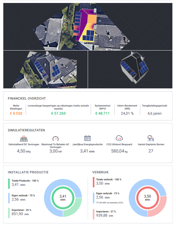 Wij gebruiken hiervoor een speciaal ontwikkeld programma van Solaredge, de nummer 1 in de wereld op het gebied van omvormers voor PV zonnepanelen.